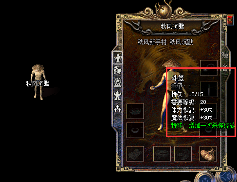 斗笠的作用是额外获得一次杀怪经验(差不多1.2倍经验)